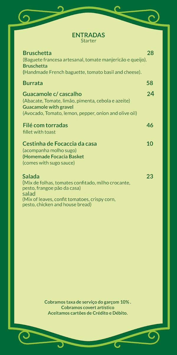 Viewed as a whole, the menu at Cafeteria Orgânica Da Serra reflects a clear focus on comfort, balance, and simple culinary pleasure, where each highlighted dish plays a distinct role in shaping the dining experience. The savory offerings, such as Spaghetti and Gnocchi, anchor the menu with familiar Italian-inspired flavors that feel thoughtfully prepared rather than overly complicated, making them reliable choices for guests looking for something satisfying and well-rounded. Filé Mignon Com Torradas stands out as a more indulgent option, pairing tender meat with crisp toast in a way that feels hearty yet controlled, reinforcing the restaurant’s attention to texture and contrast. On the lighter side, Café Cappuccino Cremoso E Croissant adds a refined café-style touch, blending a smooth, creamy coffee with a buttery pastry that works equally well as a breakfast item or a relaxed afternoon break. Together, these dishes illustrate a menu that prioritizes quality and coherence over excess, offering enough variety to appeal to different tastes while maintaining a consistent identity. From a reviewer’s perspective, the strength of the menu lies in this harmony: each item feels purposeful, accessible, and aligned with the restaurant’s organic, welcoming atmosphere, leaving a clear and cohesive impression of what Cafeteria Orgânica Da Serra aims to deliver through its food.